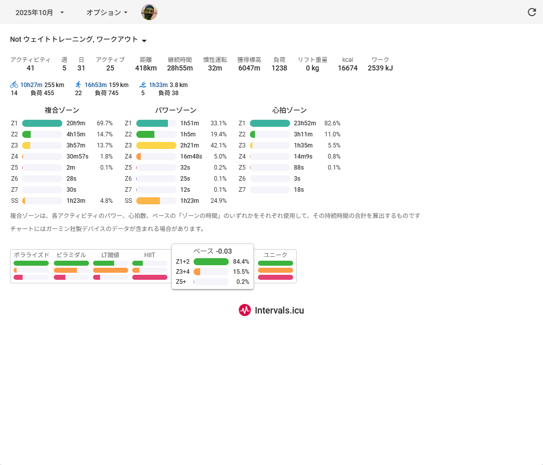 ランとバイクの距離がかなり伸びており、好調です。